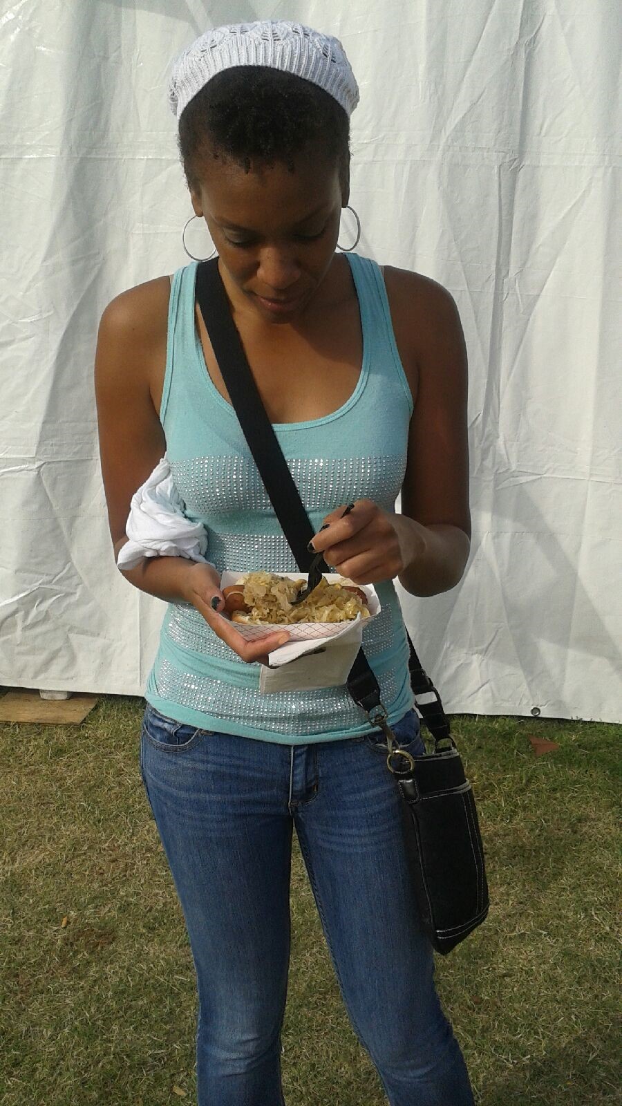 If the Tulsa State Fair blog is any indication to you of what my main objective was when attending this Oktoberfest then you already know…I came for some food baby. We exchanged our cash for tickets (a pretty good way of currency I must say, 1 ticket is equivalent to $1), and then we went to find some food. There were numerous tents set up with the majority of which being the tents housing the music performers and seating. Any tent that wasn’t for music was for food or merchandise. Out first stop was to fill up our souvenir mug with none other than beer of course. After that we stopped by The Schnitzel Haus where we got a…you guessed it…a schnitzel. I had never eaten one and didn’t know what to expect, but it actually wasn’t bad. It was almost like a pork chop sandwich (yes I know that’s so country, lol) but without the toughness of the meat. When it was all said and done we had a schnitzel, a bratwurst with sauerkraut, a funnel cake, lemonade, German brownies, and a corn dog.