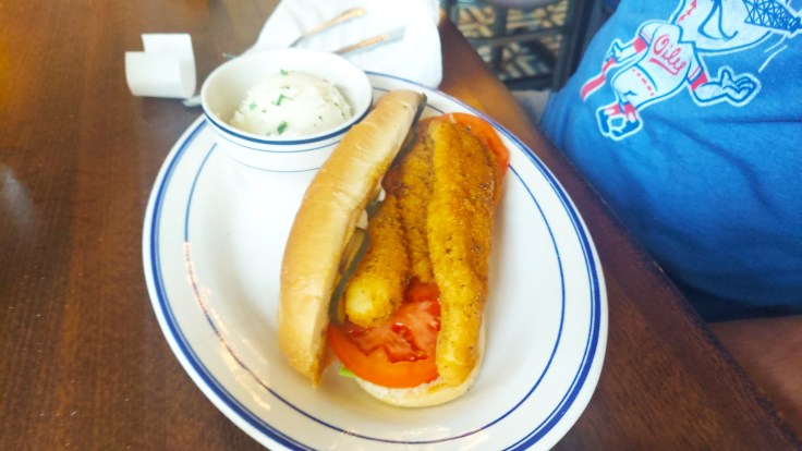 My husband loves a good po’ boy. His favorite po’ boy is from a restaurant that unfortunately is no longer around. For quite some time he’s been taking a chance here and there at different restaurants, hoping to get a new favorite. When he noticed there was a catfish po’ boy option on the menu, he had to try it. The sandwich consisted of two fried catfish filets, lettuce, tomato, pickles, and a hot mayo. My husband is not into spicy food. He did not seem to notice any heat from the hot mayo. Depending on your level of spice you prefer, this could be a good thing or bad thing. The sandwich was supposed to come with a side of slaw, but my husband did not receive any. Although he didn’t get the slaw, he still thoroughly enjoyed the catfish po’ boy and it is currently his favorite catfish po’ boy in Tulsa. He also got a side of mashed potatoes. Those were underwhelming and he wished it came with gravy.